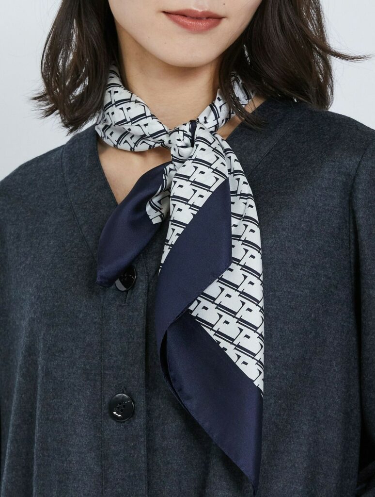 Feb, 08 2026 モノグラムのシルクスカーフ L’EQUIPEのL’をモノグラムにしたシルクスカーフ。 使いやすいサイズ感とシルクのなめらかさが魅力。 Scarf ¥ 17,600 ネックが開いたブラウスにはもちろん、タートルのインに重ねても素敵です。 お楽しみください。
