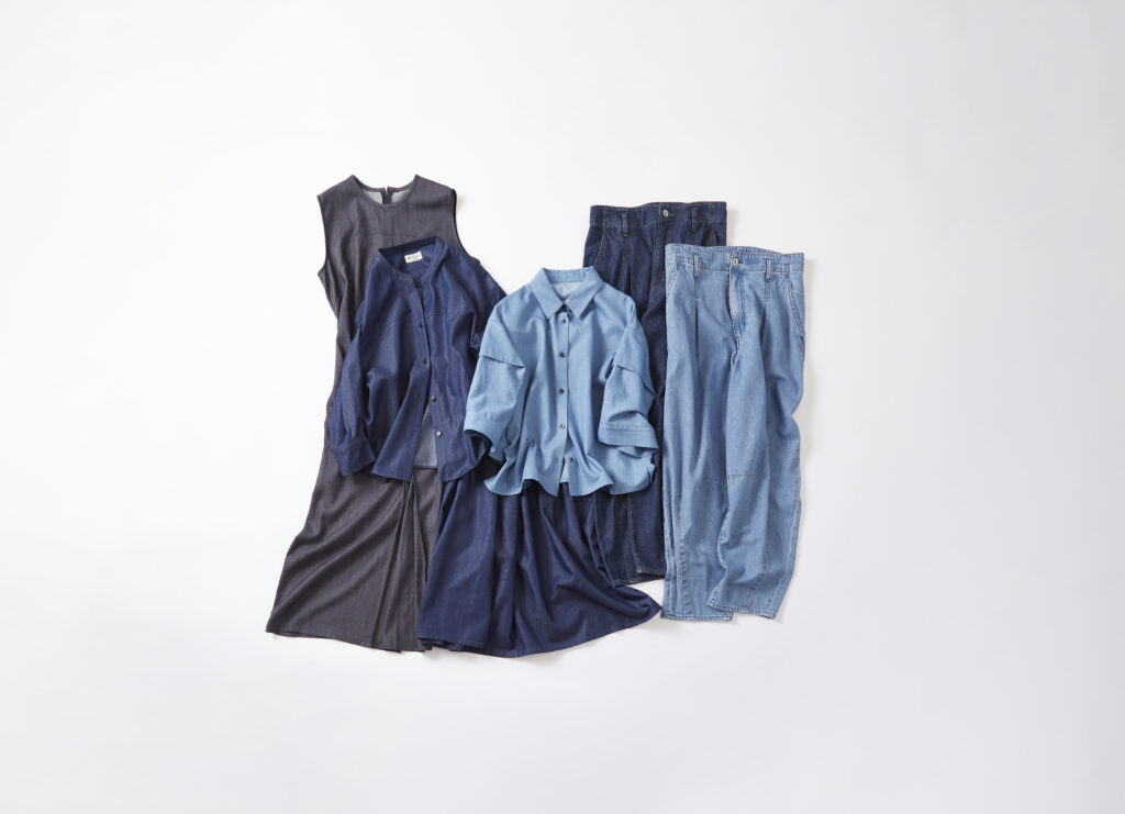 やわらかで着心地のよいデニムパンツや、ダンガリーのブラウスやワンピースなど。。。